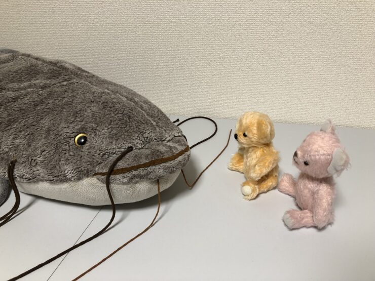 ダイアンぬいぐるみ診療所にやってきた、ビッグな愛嬌たっぷりのビワコオオナマズ、「ナマちゃん」!