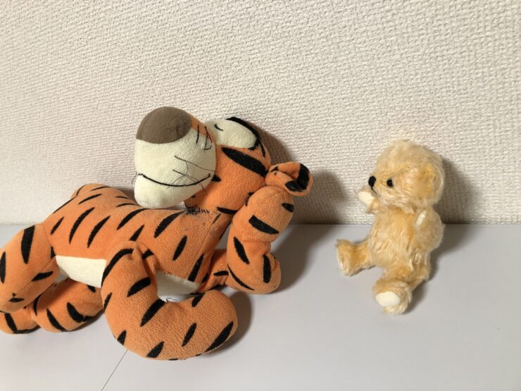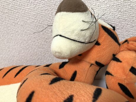 ダイアンぬいぐるみ診療所にやってきた、寝そべりポーズがチャーミングな「チャゲットくん」