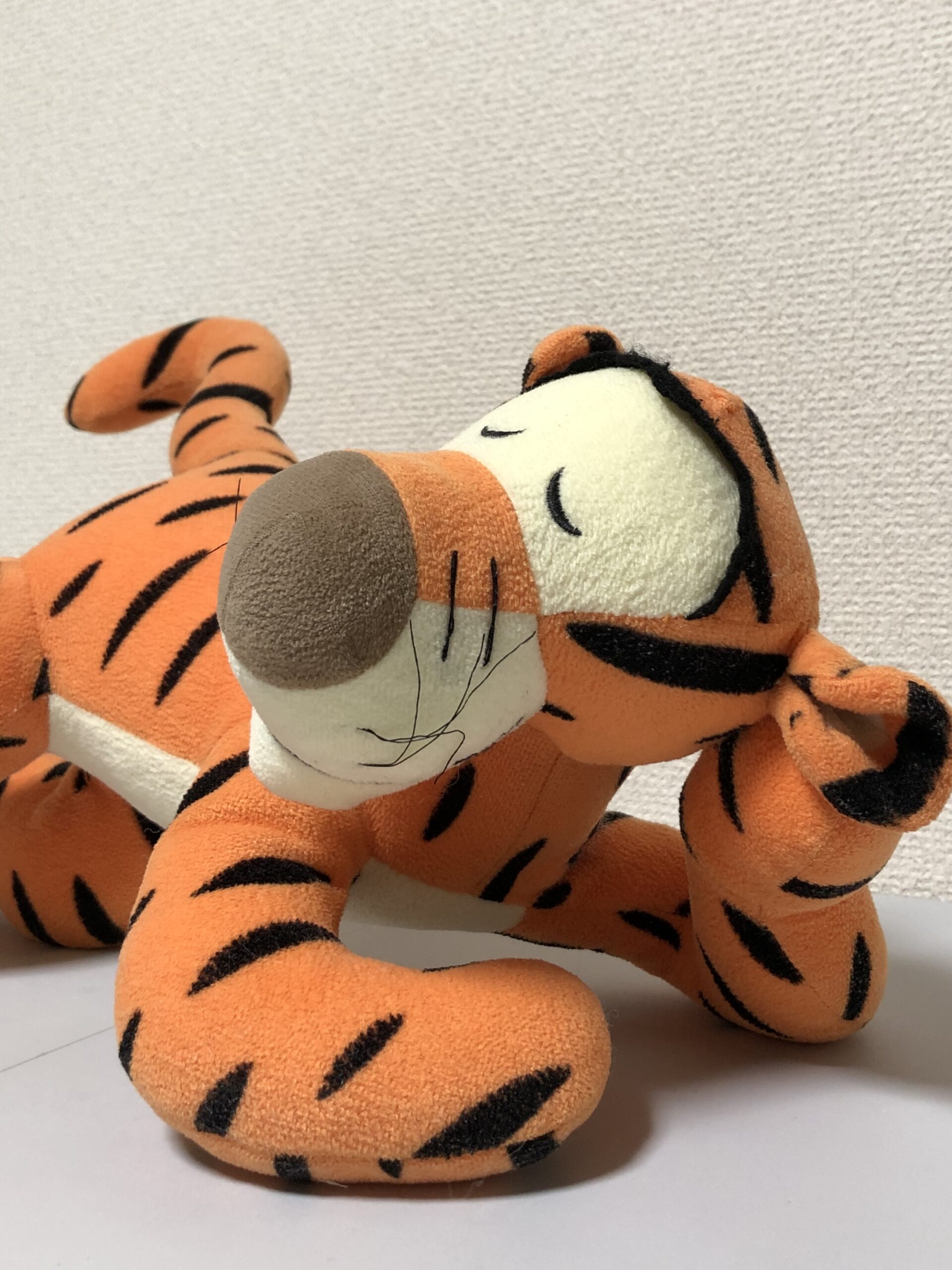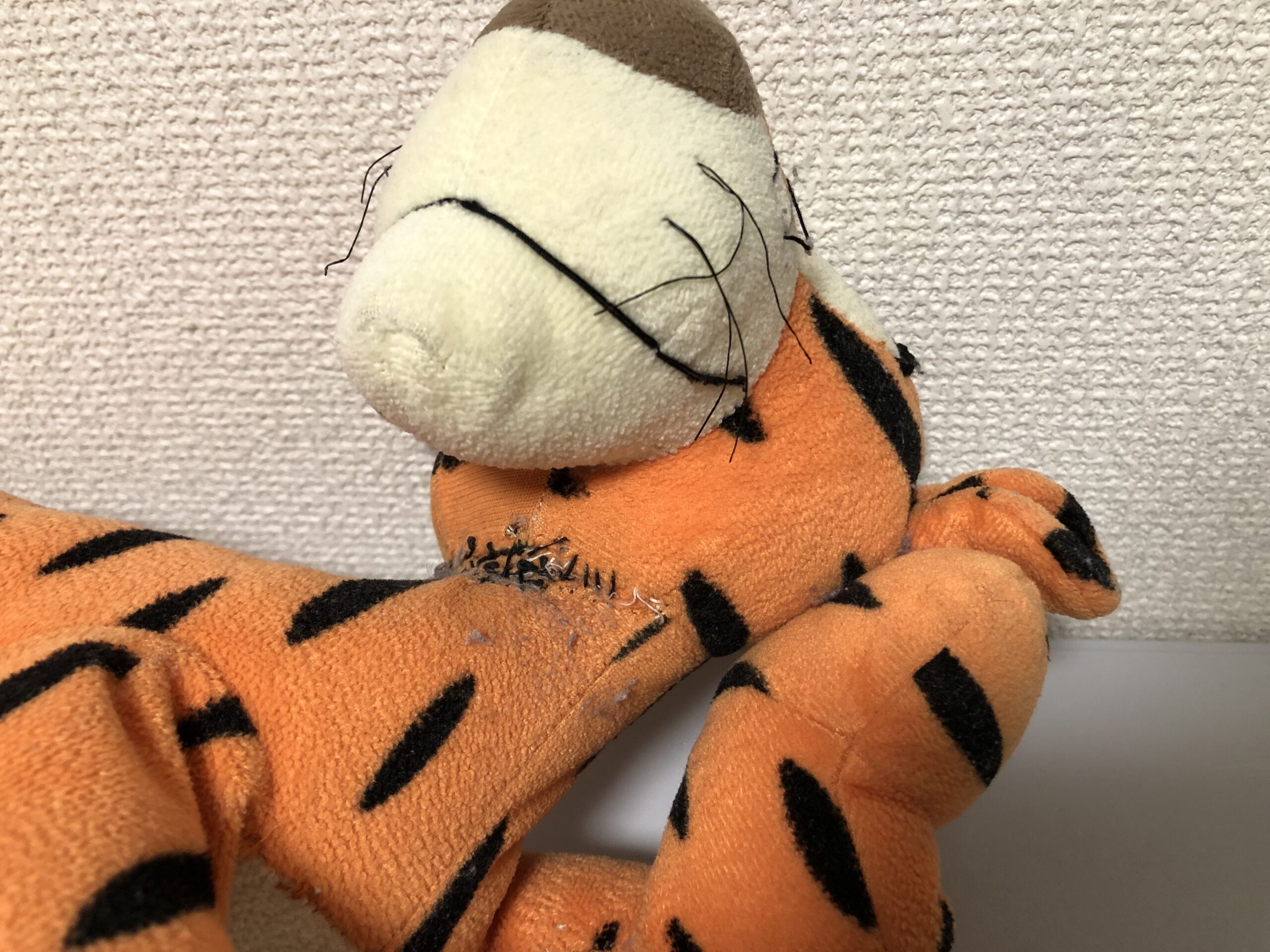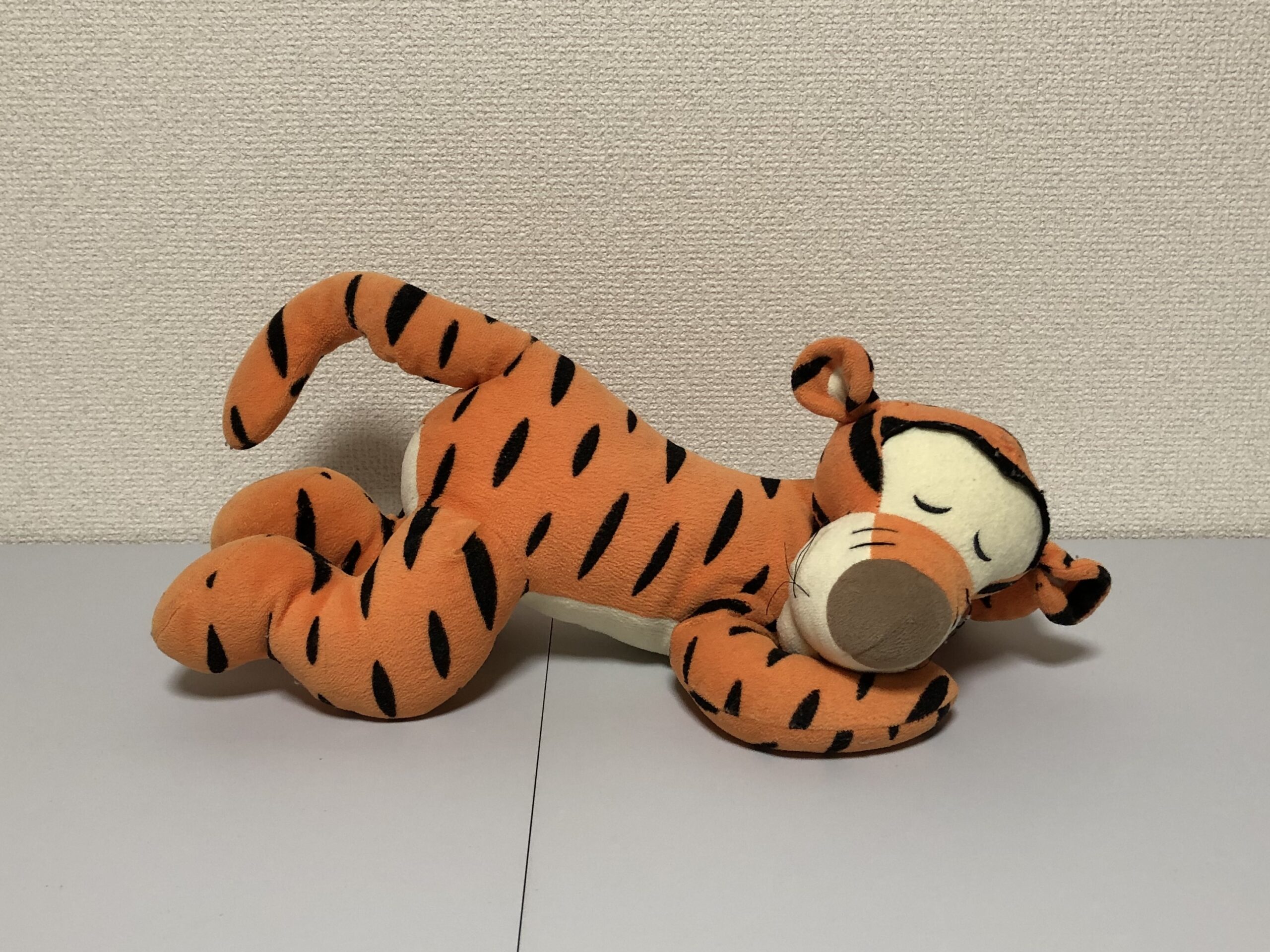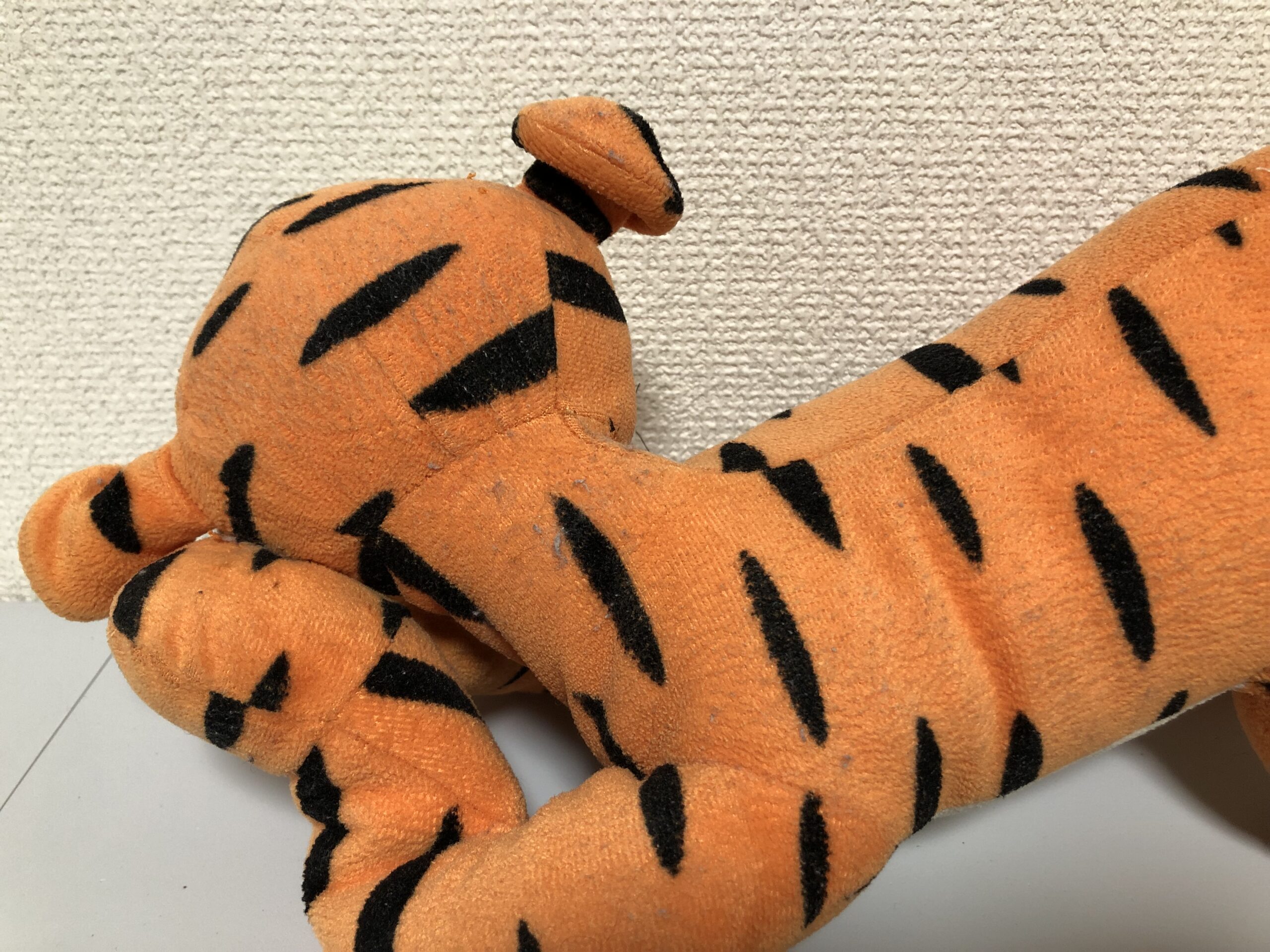 ダイアンぬいぐるみ診療所にやってきた、寝そべりポーズがチャーミングな「チャゲットくん」。