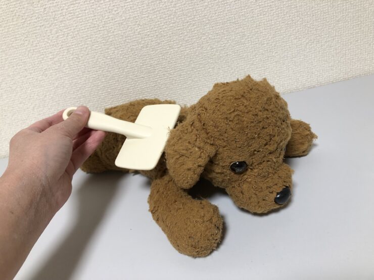 ブラッシングでは、固まっていた毛並みをほぐしていきます。