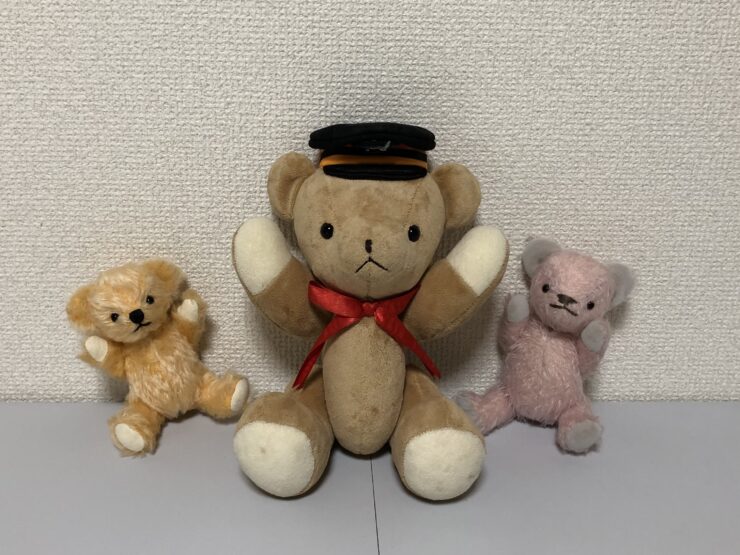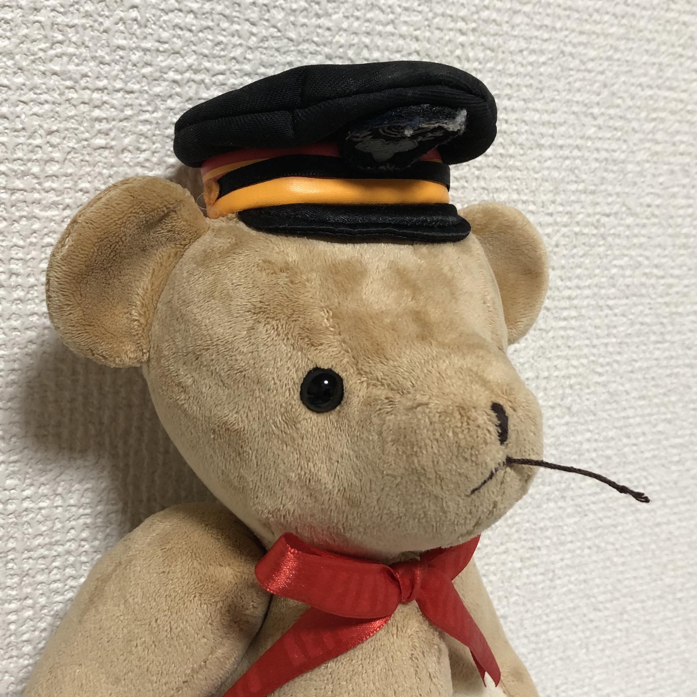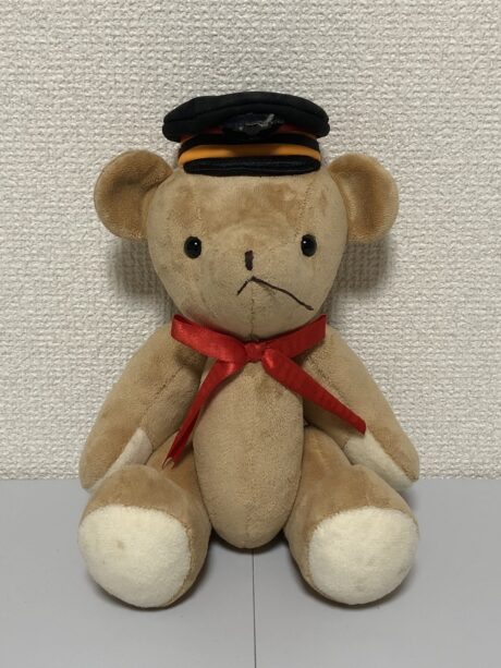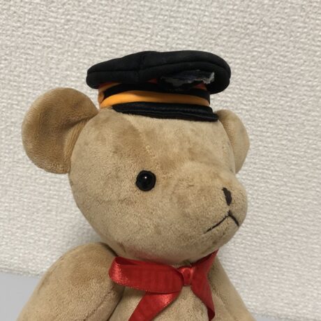 ダイアンぬいぐるみ診療所にやってきた、帽子がよく似合う可愛いクマの「ぷっぷさん」。