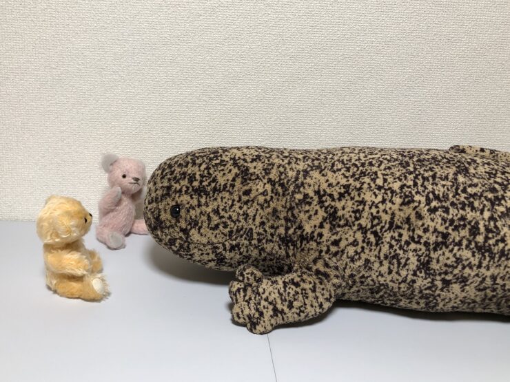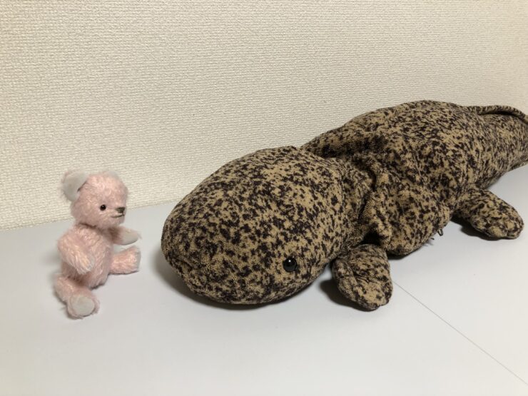 ダイアンぬいぐるみ診療所にやってきた、存在感抜群なオオサンショウウオの「うおちゃん」。