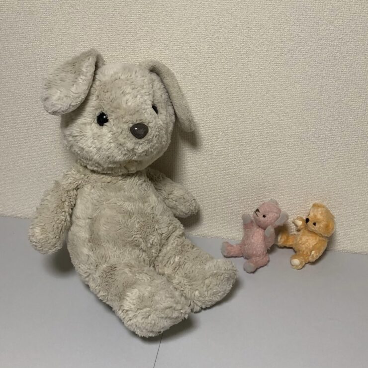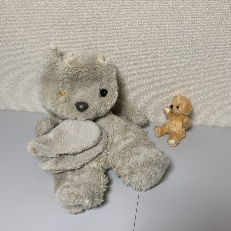 中綿の詰め直しや、取れてしまった耳や目の取り付けを行いました。