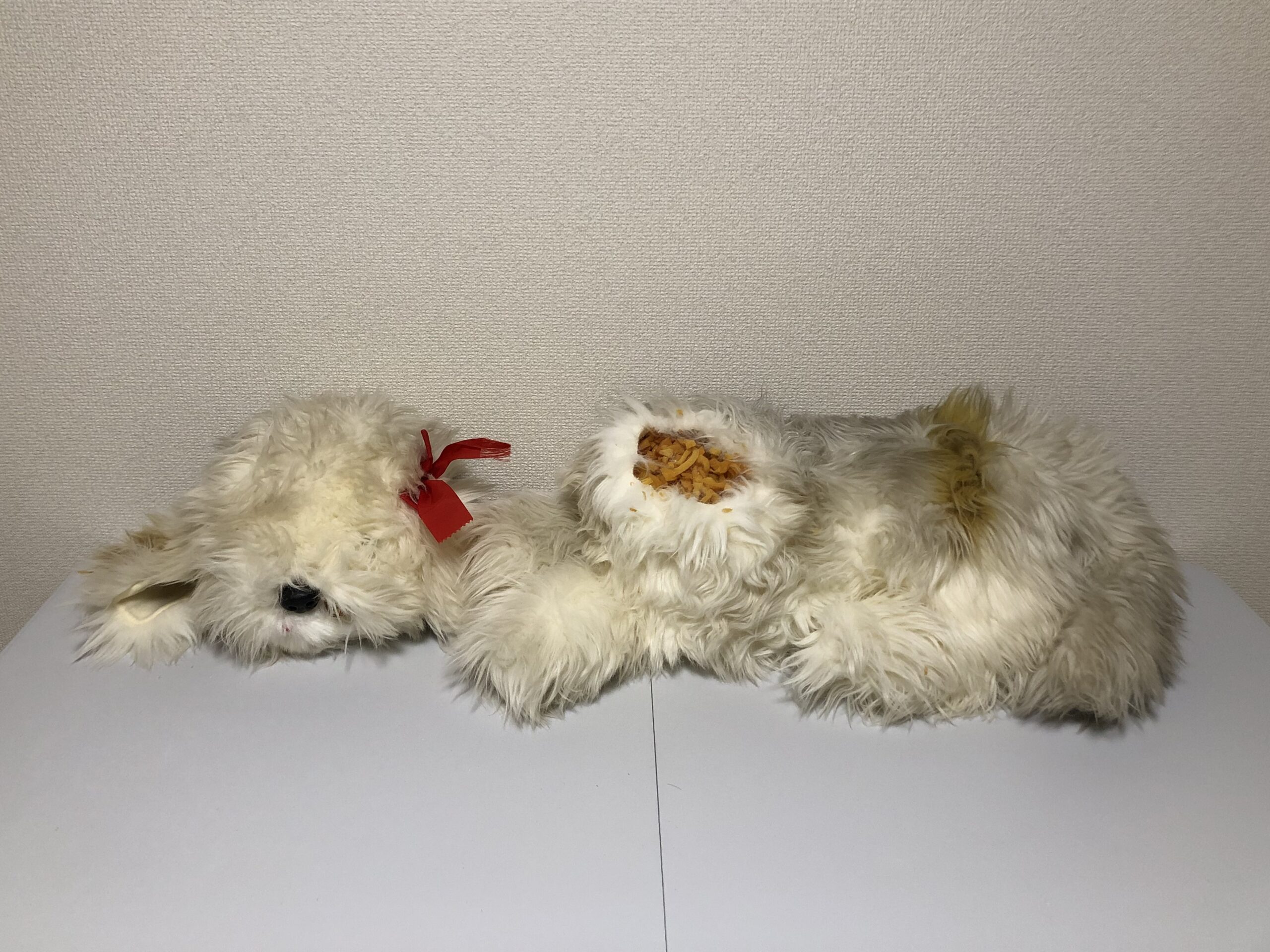 ダイアンぬいぐるみ診療所にやってきた、フワフワの毛並みが愛くるしいワンちゃん。