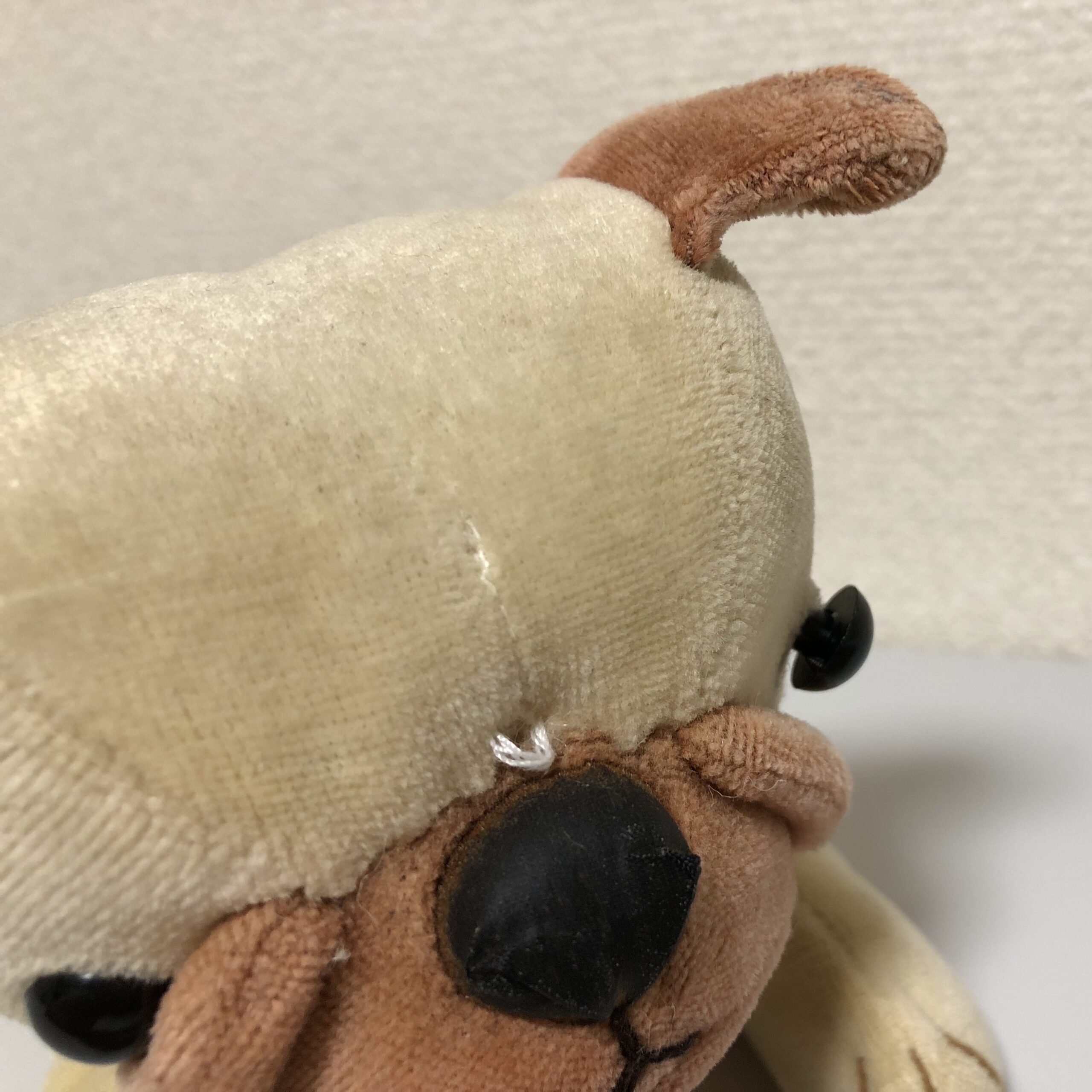 お顔の糸のほつれや、緩んでいた目のパーツも治療しました。