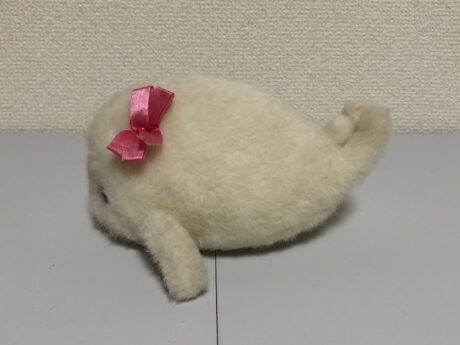 ダイアンぬいぐるみ診療所にやってきた、ピンクのリボンが似合うキュートな「しろちゃん」。