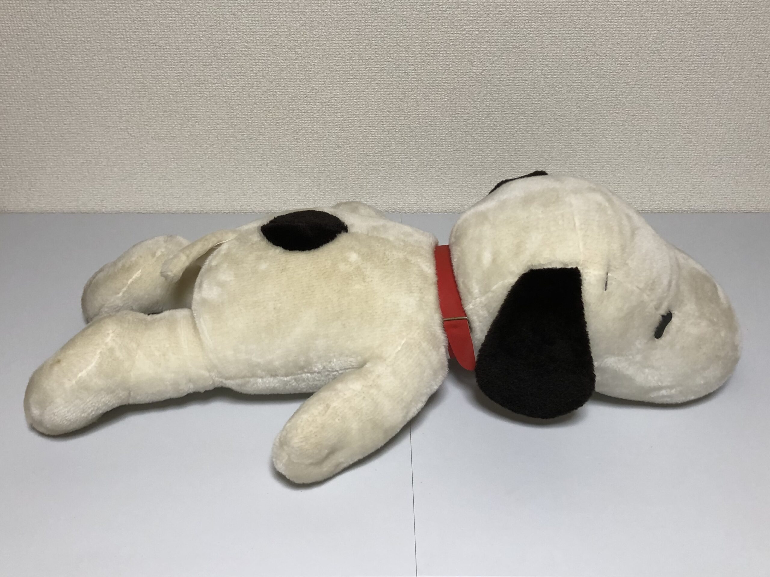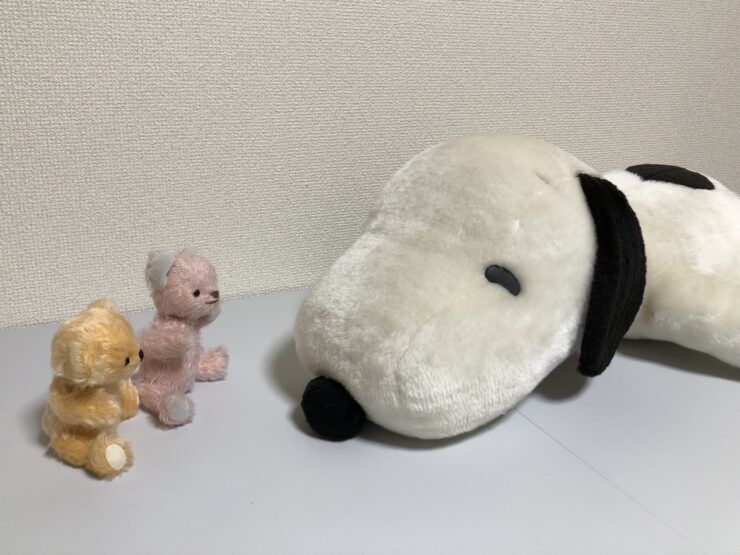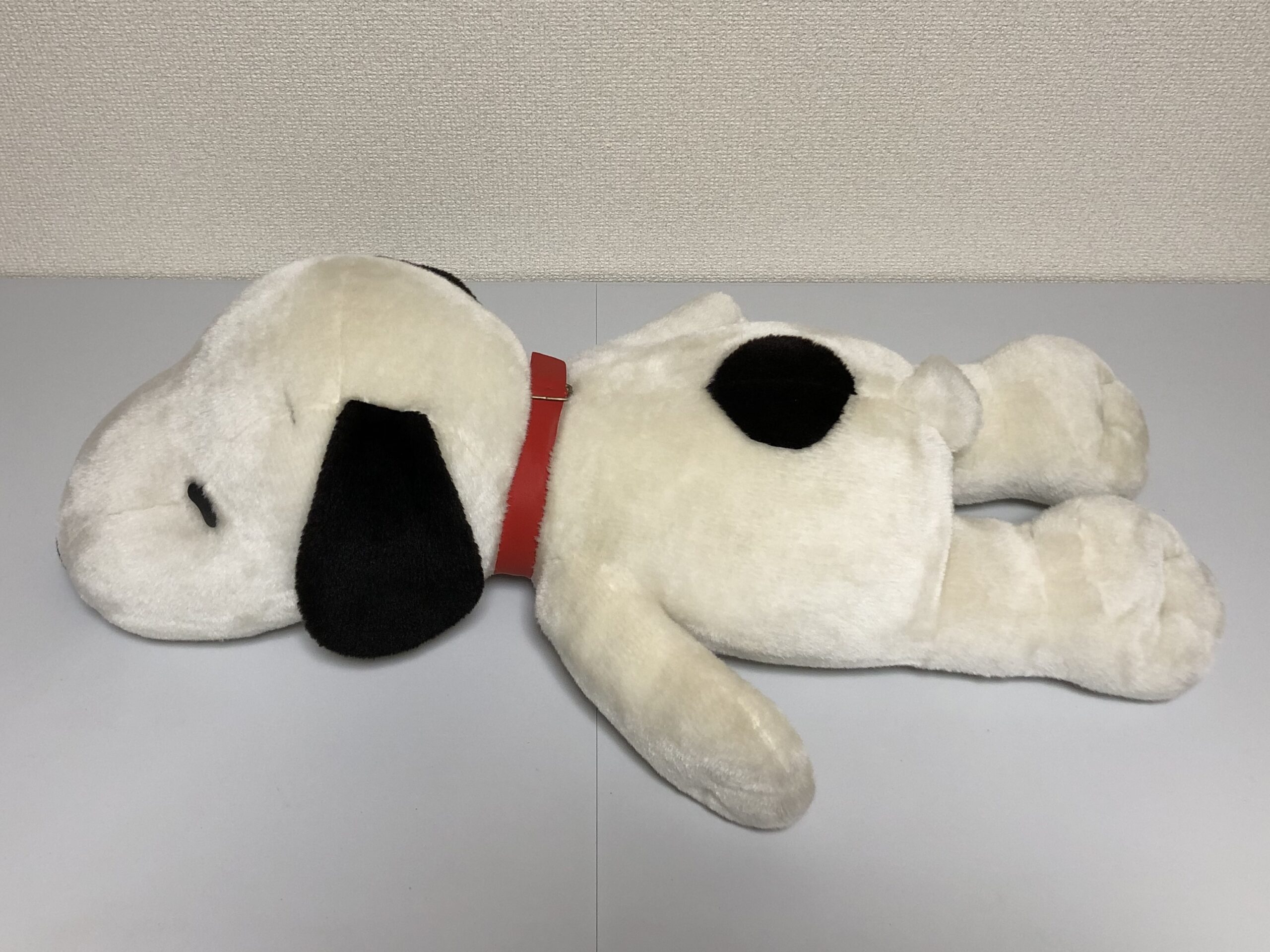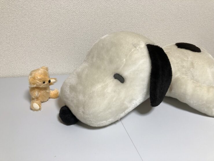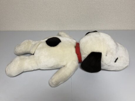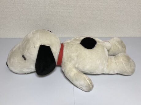 ダイアンぬいぐるみ診療所にやってきた、のんびり寝そべる姿が愛らしい「スヌーピーくん」。