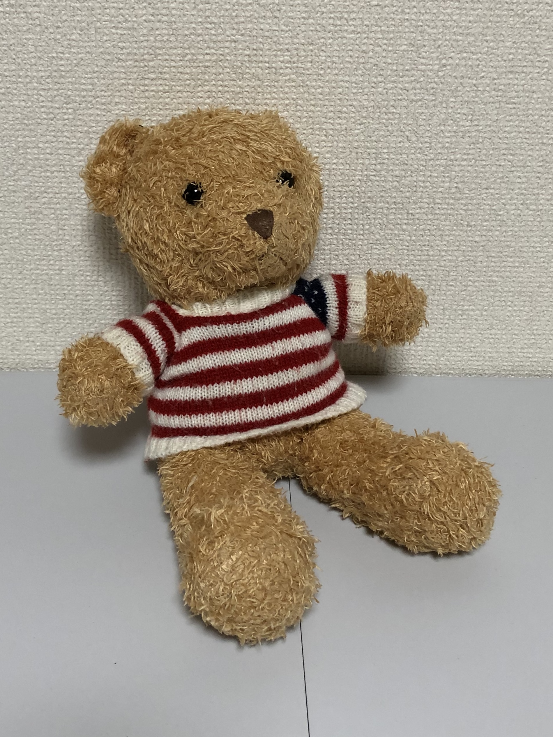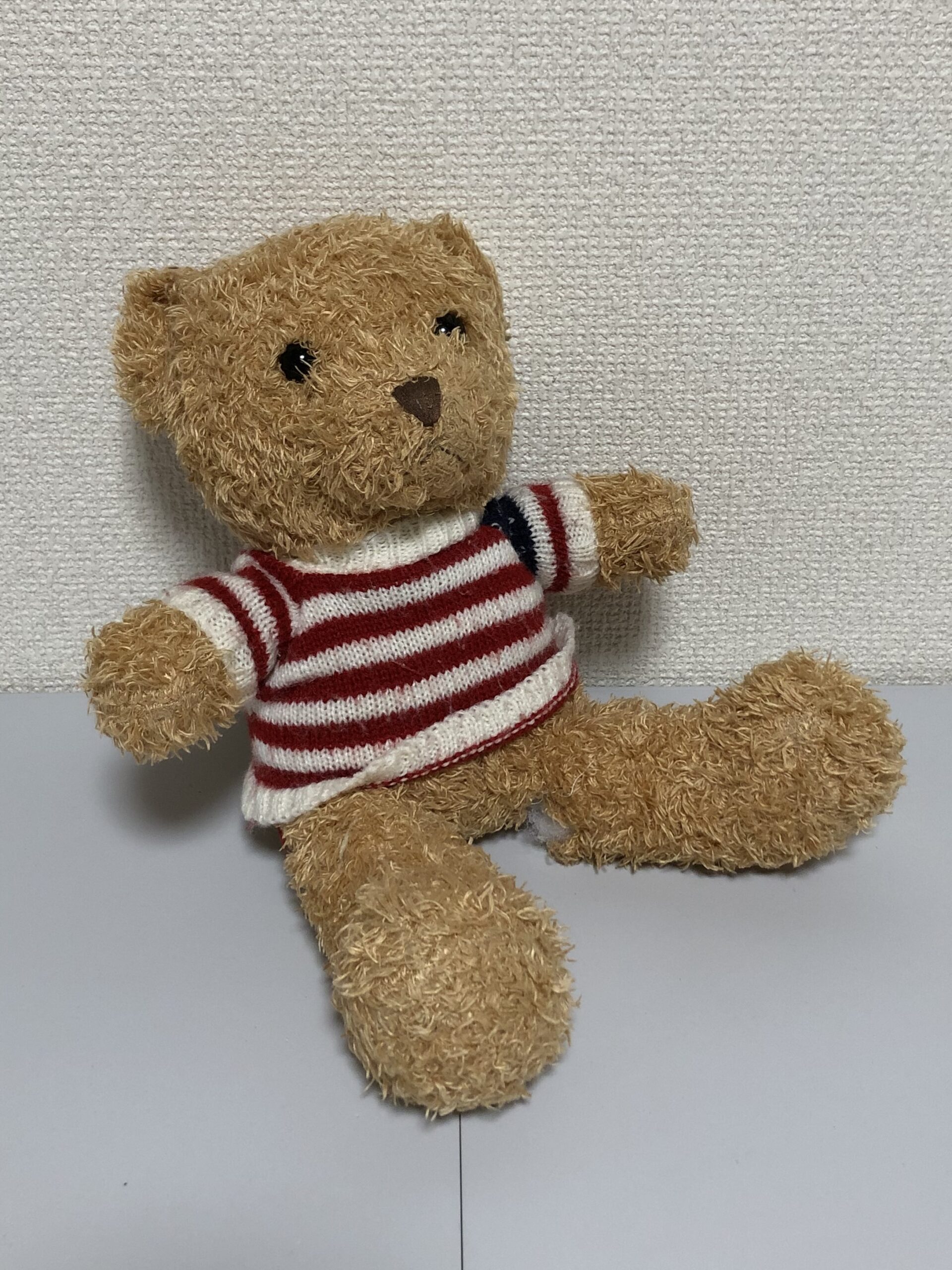 ダイアンぬいぐるみ診療所にやってきた、セーターをおしゃれに着こなすキュートな「くまさん」。