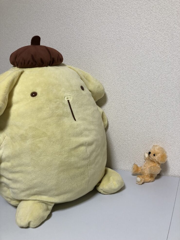 ダイアンぬいぐるみ診療所にやってきた、存在感と愛嬌たっぷりな「ポム太郎くん」。
